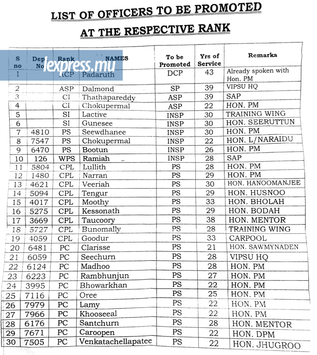 Le président de la POSU s’est fendu d’un long message sur les réseaux sociaux suivant la parution de l’article de l’express intitulé «Police: 11 futurs promus sur 30 affectés auprès de Pravind Jugnauth?». Jaylall Boojhawon explique que plusieurs policiers ont pris contact avec le syndicat. «Ils se sentent découragés, frustrés et écœurés.»