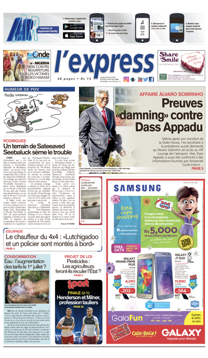 À la une : Preuves «damning» contre Dass Appadu dans l’affaire Álvaro Sobrinho. Autre titre : Augmentation des tarifs de l’eau le 1er juillet ?
