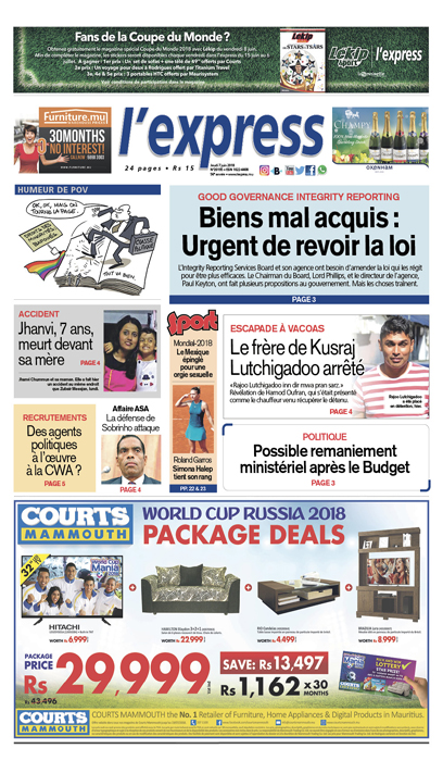 Les grands titres de l’express de ce jeudi 7 juin