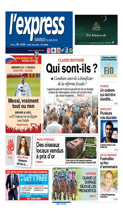 En une: Classe moyenne : Qui sont-ils ? – Trafic inter-îles: Des oiseaux locaux vendus à prix d’or – Hippisme: Quand le dopage déjoue les pronostics.