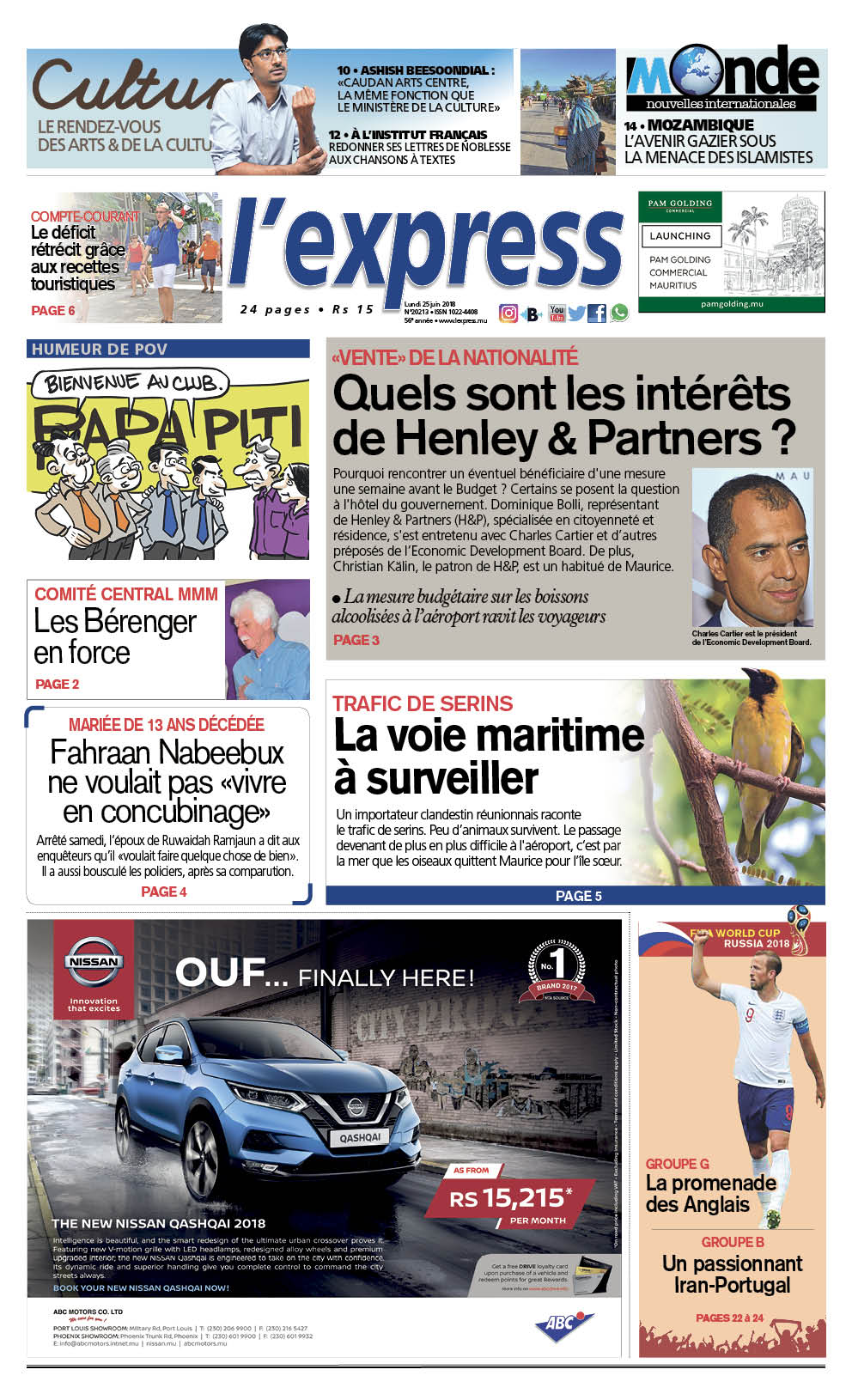 Pourquoi rencontrer un éventuel bénéficiaire d'une mesure une semaine avant le Budget ? Certains se posent la question à l'hôtel du gouvernement. Dominique Bolli, représentant de Henley & Partners (H&P), spécialisée en citoyenneté et résidence, s'est entretenu avec Charles Cartier et d’autres préposés de l’Economic Development Board. De plus, Christian Kälin, le patron de H&P, est un habitué de Maurice.