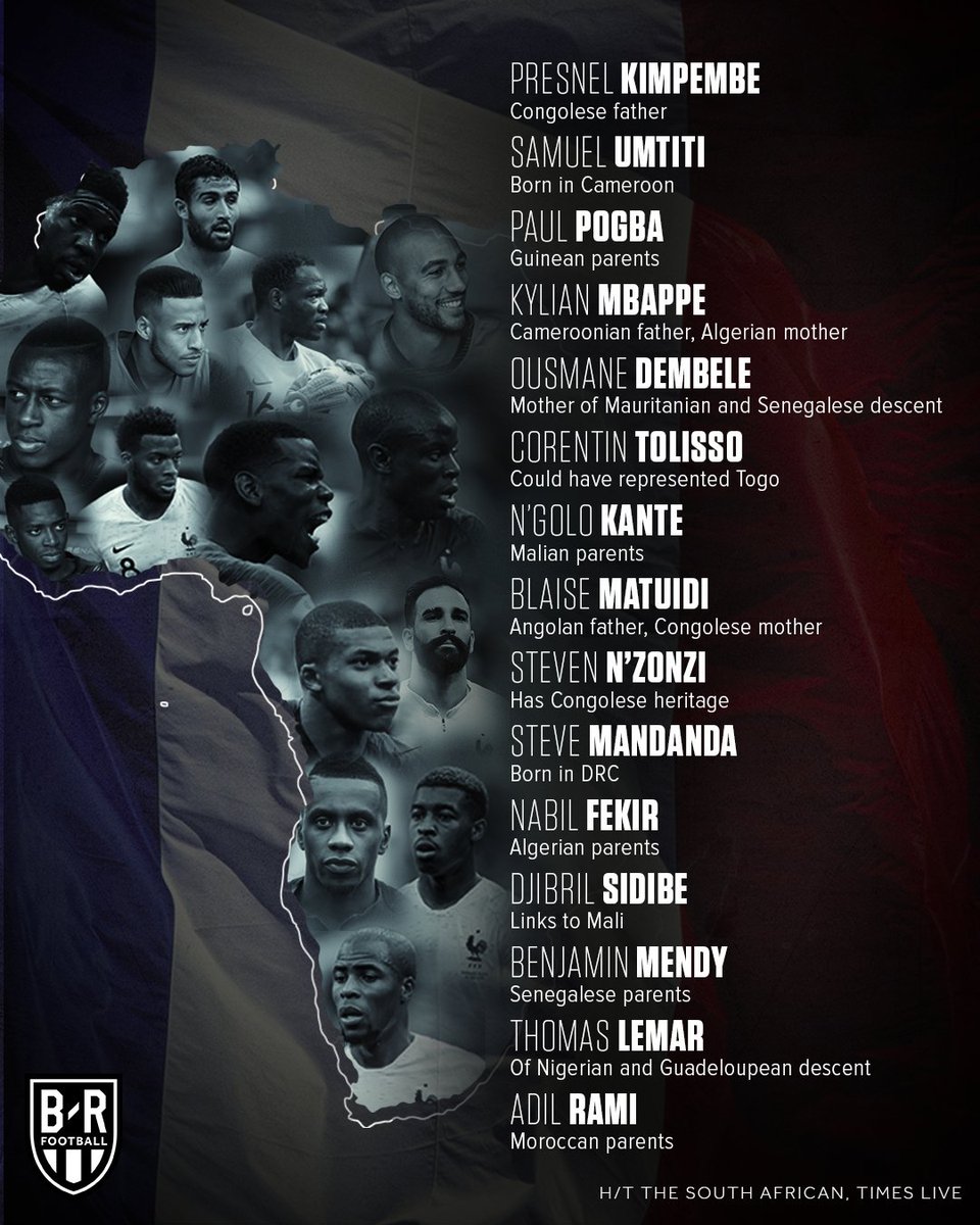 Comme l’a dit Paris-Match sur son site internet le sacre de l’équipe de France, dimanche 15 juillet en Coupe du monde (4-2 contre la Croatie), est aussi un peu la victoire du continent africain, dont sont originaires 15 joueurs, soit la moitié de la sélection de Didier Deschamps.