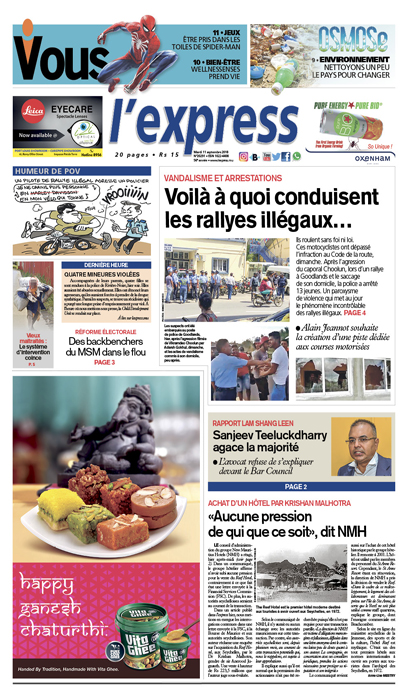 En une : Vandalisme et arrestations – Voilà à quoi conduisent les rallyes illégaux ; Rapport Lam Shang Leen – Sanjeev Teeluckdharry agace la majorité ; Réforme électorale – Les backbenchers du MSM maintenus dans le flou.
