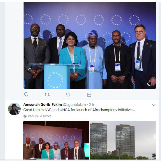 Toutefois, Ameenah Gurib-Fakim assiste à un “side event” : le Food System Approaches to the Prevention of Noncommunicable Diseases (NCDs), qui se tenait le 25 septembre. Sur sa page Twitter l’ex-présidente s’est dit heureuse d’être au lancement de ce projet. Elle semble parfaitement dans son élément, pas du tout dépaysée, au vu des photos postées.