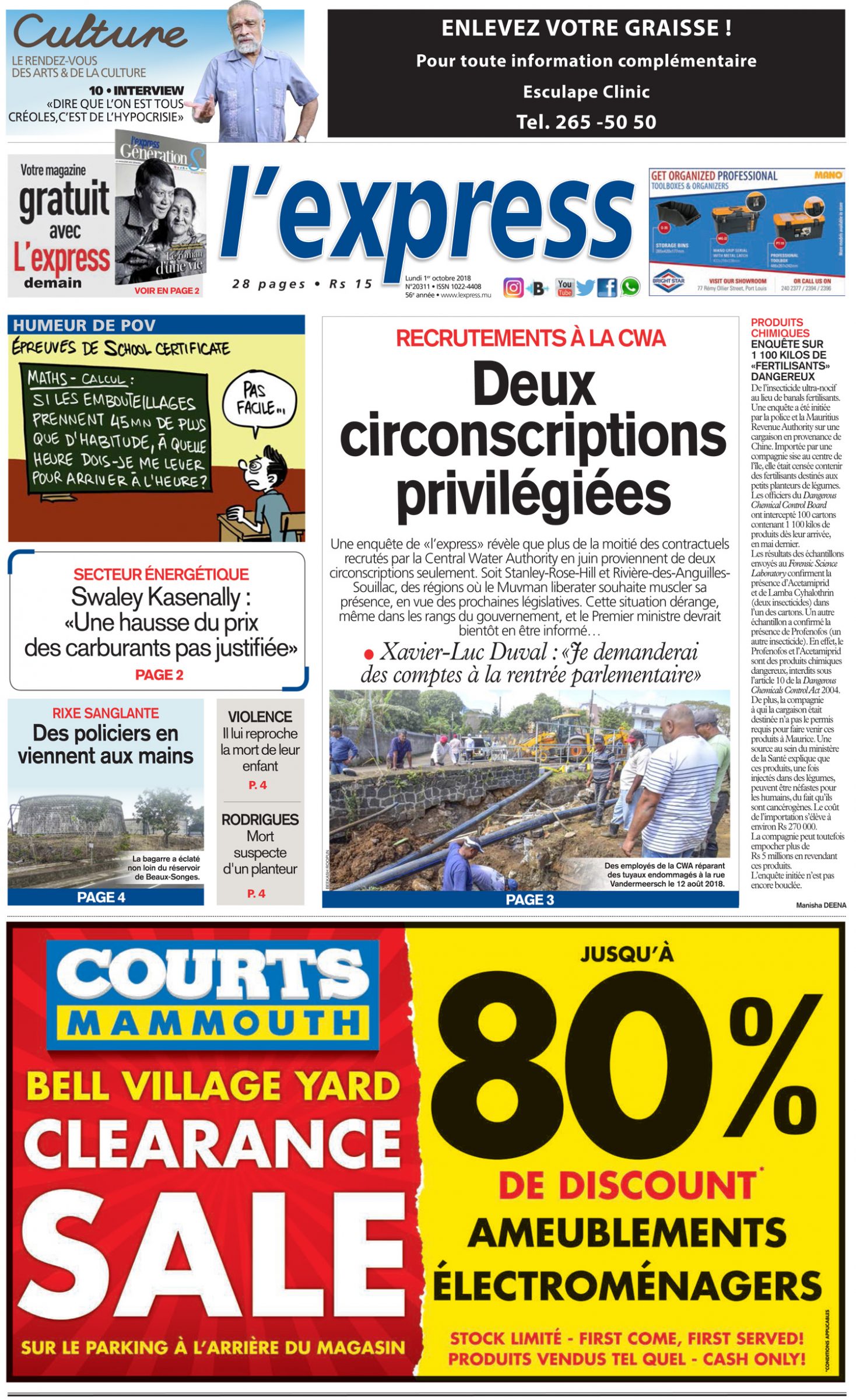 Une enquête de «l’express» révèle que plus de la moitié des contractuels recrutés par la Central Water Authority en juin proviennent de deux circonscriptions seulement. Soit Stanley-Rose-Hill et Rivière-des-Anguilles Souillac, des régions où le Muvman liberater souhaite muscler sa présence, en vue des prochaines législatives. Cette situation dérange, même dans les rangs du gouvernement, et le Premier ministre devrait bientôt en être informé…
