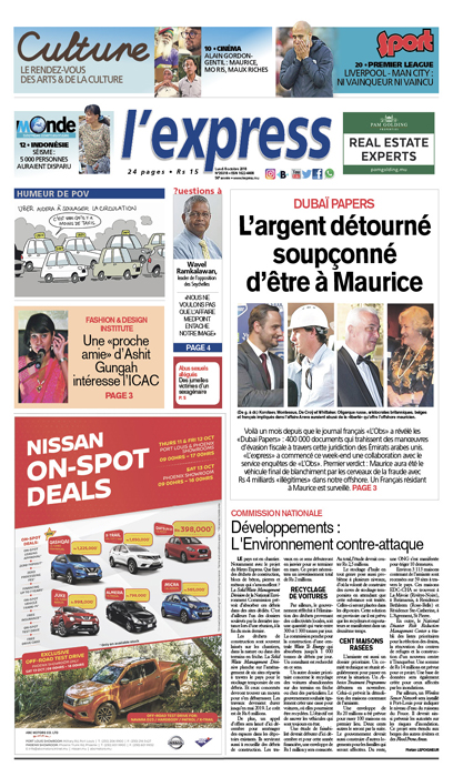 En une, dans l’affaire Dubaï Papers, l’argent détourné soupçonné d’être à Maurice. Autres titres : l'Environnement contre-attaque.
