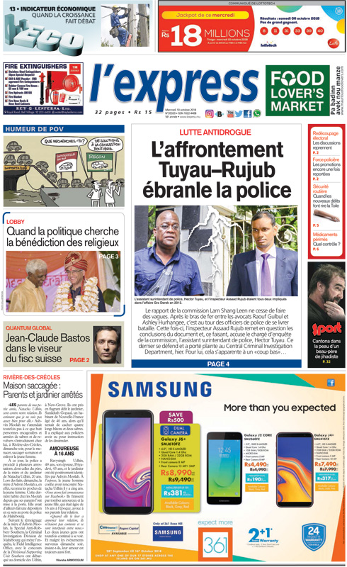 Le rapport de la commission Lam Shang Leen ne cesse de faire des vagues. Après le bras de fer entre les avocats Raouf Gulbul et Ashley Hurhangee, c’est au tour des officiers de police de se livrer bataille. Cette fois-ci, l’inspecteur Assaad Rujub remet en question les conclusions du document et, ce faisant, accuse le chargé d’enquête de la commission, l’assistant surintendant de police, Hector Tuyau. Ce dernier se défend et a porté plainte au Central Criminal Investigation Department, hier. Pour lui, cela s’apparente à un «coup bas»…