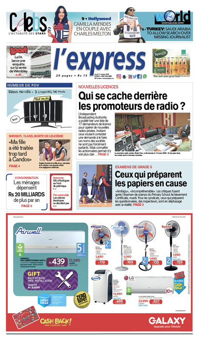 En une : Nouvelles licences – Qui se cache derrière les promoteurs de radio ? ; Examens de Grade 5 – Ceux qui préparent les papiers en cause ; Shrishti, 15 ans, morte de leucémie – «Ma fille a été traitée trop tard à Candos»