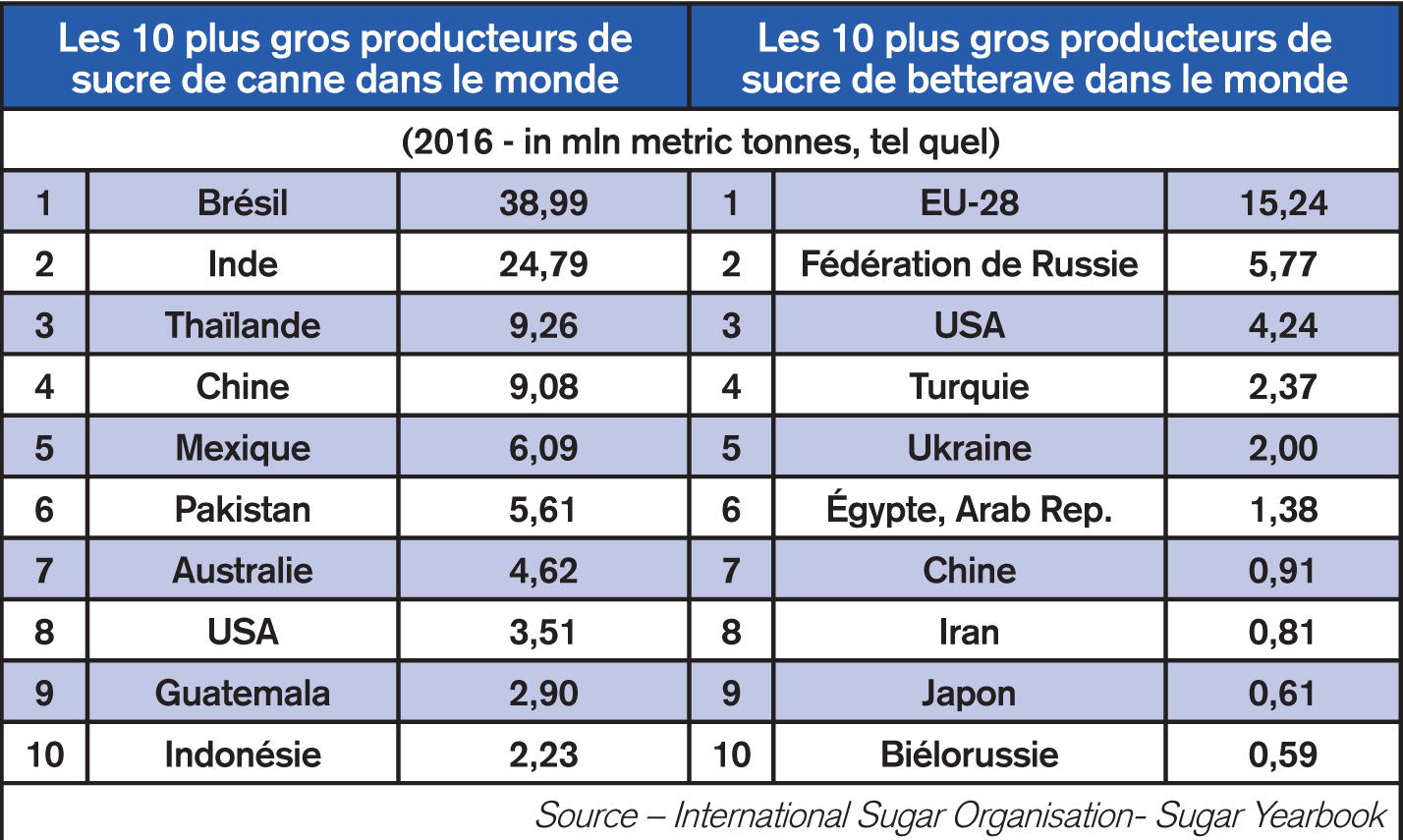 Devesh Dukhira, Chief Executive Officer (CEO) du Syndicat des sucres, explique à ce titre qu’il s’agit de sucre roux importé pour être raffiné sur l’île avant d’être exporté. Une petite partie est également destinée au marché local. Les 24 000 tonnes restantes, ont, pour leur part, été importées par d’autres importateurs et distributeurs indépendants. Il s’agit ici de sucre blanc importé de l’Union européenne (l’Allemagne, la France, le Portugal ou encore la Belgique). Fait intéressant : Maurice importe également du sucre de la Thaïlande ou encore de l’Inde (deuxième plus gros producteur mondial de sucre de canne), de l’Afrique du Sud, des Émirats arabes unis (E.A.U) et même du Swaziland. Cela, bien que le tonnage soit nettement inférieur (190 kg du Swaziland et 1,2 tonne des E.A.U en 2017).