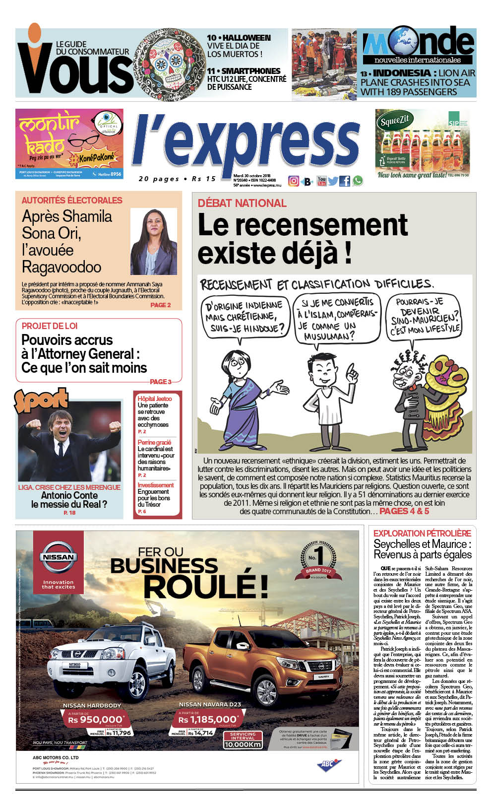 Les grands titres de l’express de ce mardi 30 octobre