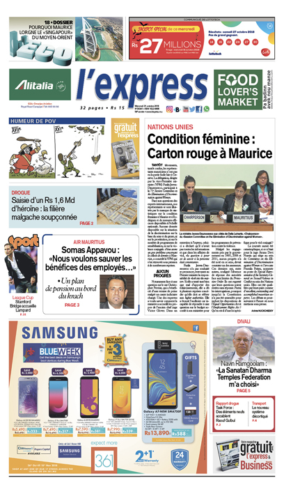 En une : carton rouge à Maurice sur la condition féminine. Autres titres : suivant la saisie d’un Rs 1,6 Md d’héroïne, la filière malgache soupçonnée.