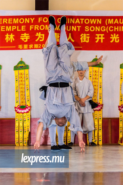 La cérémonie a eu lieu à la Pagode Choy Sin. Après la bénédiction, les autres membres de la délégation Shaolin ont fait une démonstration de leurs talents en Kung-Fu Shaolin, né dans ce temple qui se situe sur le mont Song en Chine. Le grand maître Shi Yan Zhi a exprimé sa volonté de collaborer avec le New Chinatown Foundation et de faire découvrir aux Mauriciens les bienfaits du Shaolin. Il a émis l’idée d’embellir l’amitié entre la Chine et Maurice à travers l’implantation d’un centre de la culture Shaolin à Maurice.