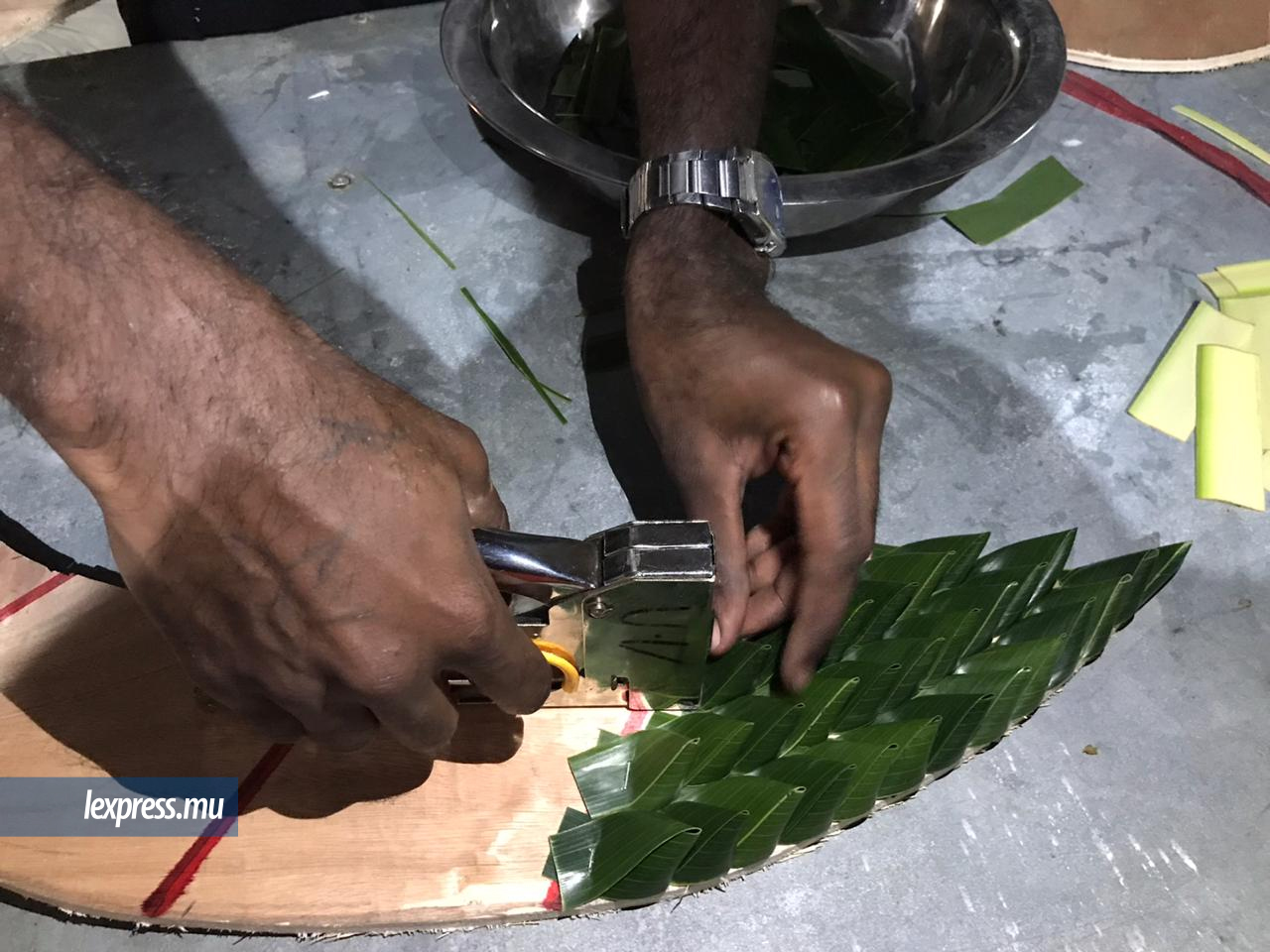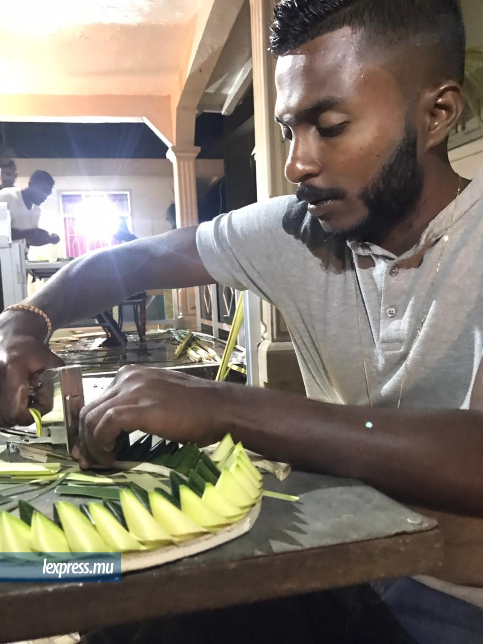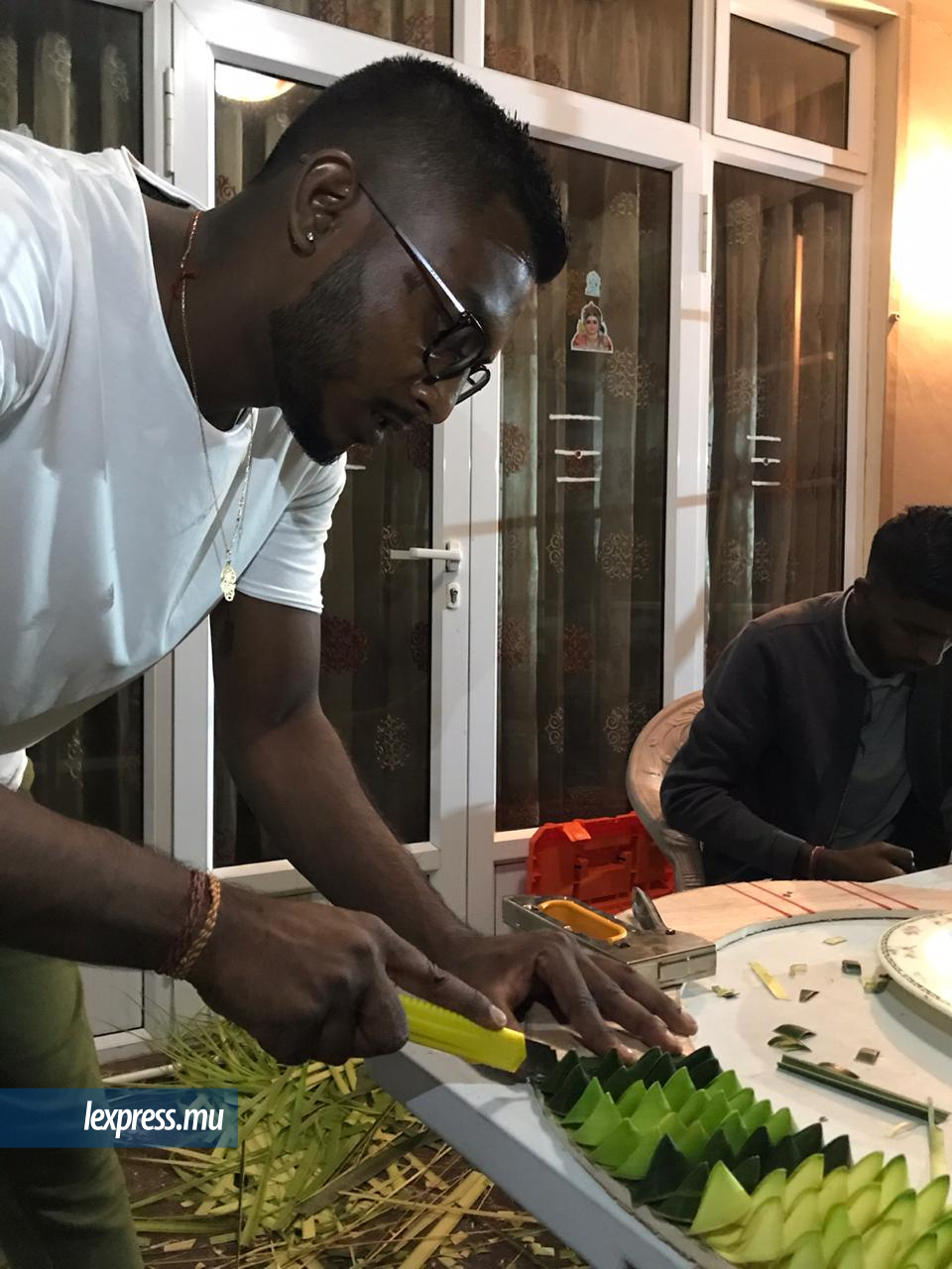 Ils ont débuté l’assemblage des cavadees dans la soirée de ce vendredi 7 février. Les jeunes du Creative Artwork en auront fini aux petites heures demain. Mais contrairement à ce qui se fait d’habitude, ce petit groupe a préféré innover. Leurs cavadees sont faits en feuilles de cocotiers.