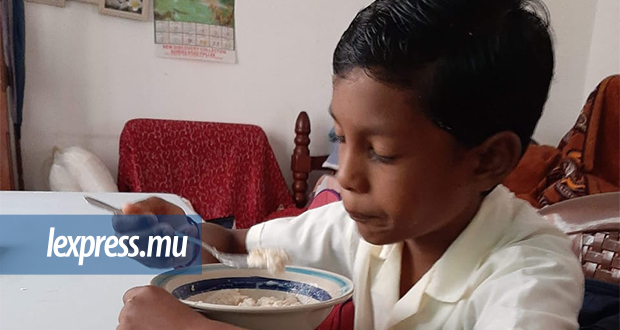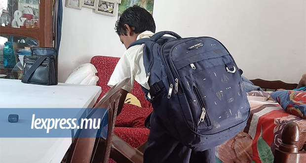 Cet élève en Grande 6 de La Flora Governement School se lève à sept heures, prend son petit déjeuner et s’installe devant la télé. Pour se mettre dans l’ambiance de lécole, il a même voulu porter son uniforme. «Pa bizin kriy ek li pou apran. Li pa bouzé tan Pena ler poz» explique sa mère, Indiana.