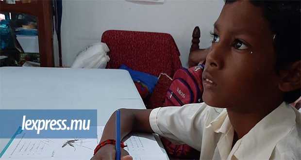 Depuis hier, lundi 6 avril, les classes ont repris virtuellement. Les cours sont dispensés à travers les chaînes de la MBC. Pour Anikesh Lallchand, 10 ans, étudier depuis la maison n’est pas une raison pour être moins appliqué dans les études.
