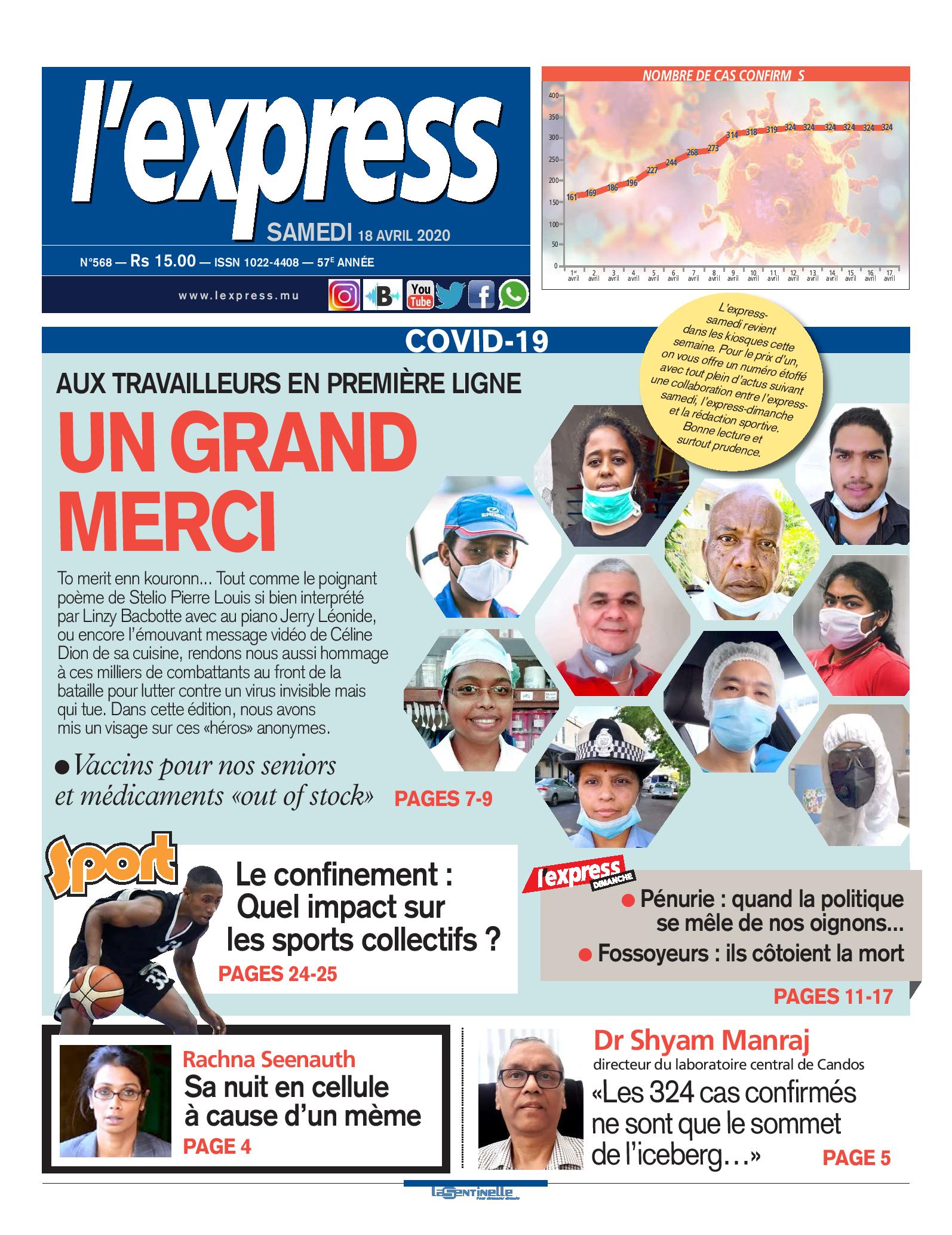 Les grands titres de l'express de ce samedi 18 avril 2020
