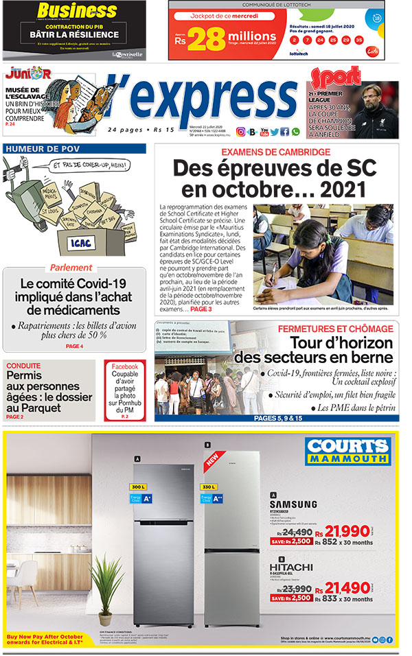 Les grands titres de l'express de ce mercredi 22 juillet 2020