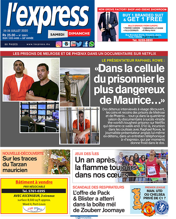 Votre journal deux en un de 80 pages en vente tout le week-end est en kiosque. Au coeur de l'actualité: Le présentateur Raphael Rowe : «Dans la cellule du prisonnier le plus dangereux de Maurice…» Autre titre ; Jeux des îles: Un an après, la flamme toujours dans nos coeurs.