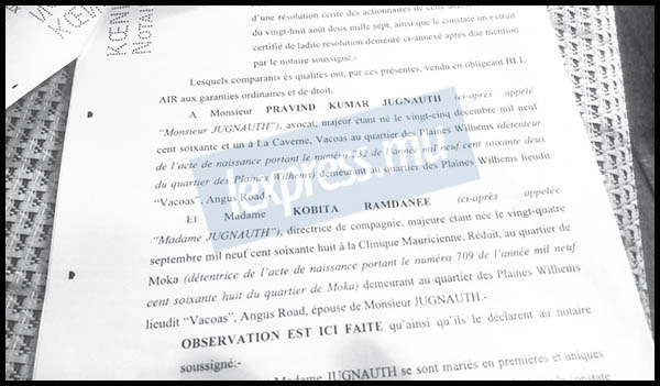 Ce n’est pas la première fois qu’on entend parler de cette affaire de terrain de 7 023 mètres carrés au total, attouché à la résidence familiale à Angus Road, Vacoas, que la famille de Pravind Jugnauth a acquis pour Rs 20 millions en 2008 de la compagnie Bel Air Sugar Estate. Les allégations autour de ce deal n’ont jamais abouti à des éléments concrets, laissant planer le verdict d’une propagande sans fondements. Or vendredi, lors d’un congrès à Rose-Belle, le leader du Reform Party a envoyé une onde de choc en montrant des extraits du document notarié. Selon l’acte, Pravind et Kobita Jugnauth détiennent la jouissance de ce terrain de 7 023 mètres carrés (comprenant un grand et un petit), dont les «acquéreurs» sont officiellement leurs deux filles, qui étaient alors mineures, et qui sont aujourd’hui âgées de 25 et 27 ans.