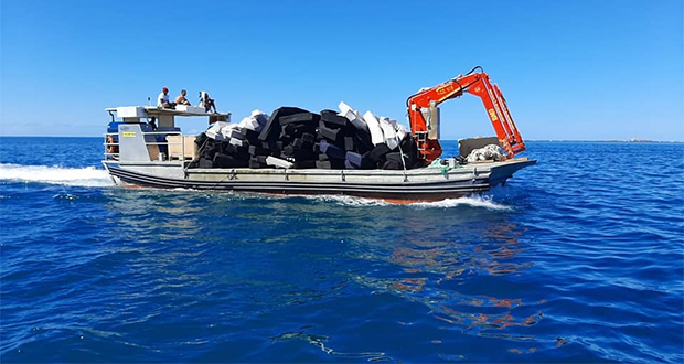 Ces booms Made in Moris ont été testés avec succès au Mahebourg Waterfront, et la National Coast Guard a installé une première partie de ces bouées de paille en mer avec succès.