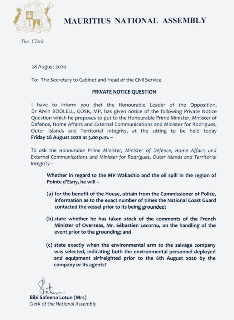 La seance s’annonce électrique, à un jour de la marche citoyenne. Le Wakashio s’invite au Parlement. L’express a pu se procurer d’un Draft de la PNQ qui sera au menu aujourd’hui.