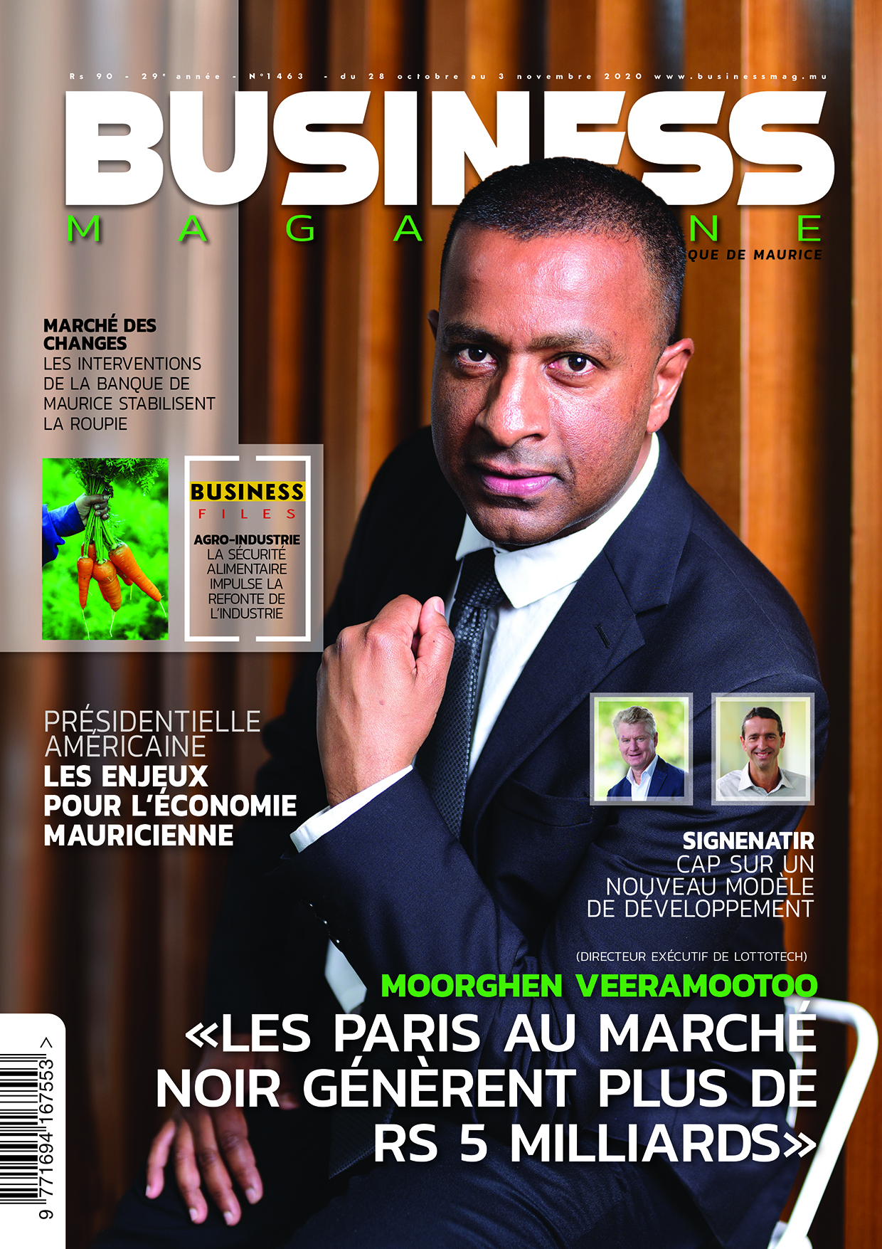 Le «cashless betting» constituera une avancée majeure pour l’industrie des jeux de hasard. Valeur du jour, les opérateurs sont en attente d’un cadre juridique pour réglementer cette pratique. De l’avis de Moorghen Veeramootoo, directeur exécutif de Lottotech, l’introduction du jeu en ligne apportera plus de transparence dans les jeux de hasard. Il met, par ailleurs, en garde contre le marché noir qui représente une véritable nuisance pour l’économie nationale, les opérateurs et la communauté des parieurs. Et donne moult détails sur la nouvelle formule de la ‘Loterie Vert’ avec un premier tirage prévu ce 6 novembre. C’est ce qui fait la couverture de Business Magazine ce mercredi 28 octobre 2020, un numéro à retrouver aux points de vente habituels et sur https://kiosk.lasentinelle.mu/presse/business-mag/