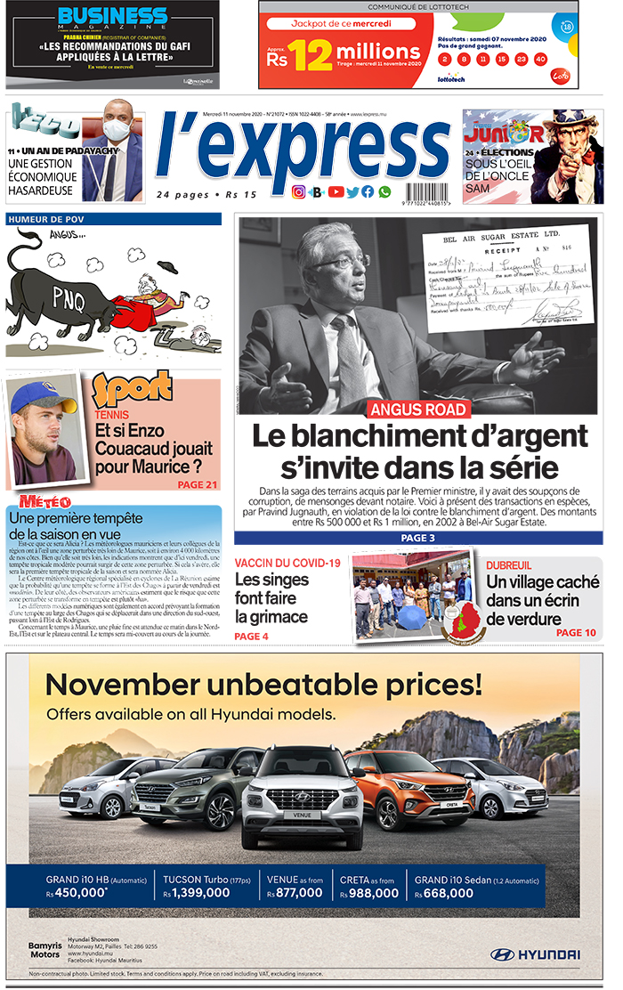 Les grands titres de l'express de ce mercredi 11 novembre 2020