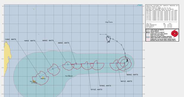 Le Joint Typhoon Warning Center prévoit une intensification du cyclone tropical avant un affaiblissement et le fait passer sur Maurice.