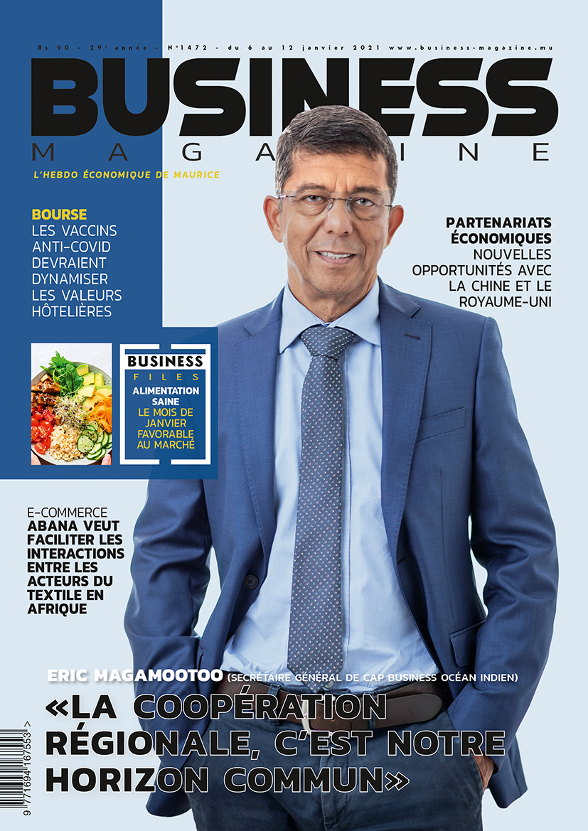 Spécialisé dans le droit des entreprises, ancien président de la Chambre de Commerce et d’Industrie de la Réunion et responsable de l’antenne de la Région Réunion à Paris pendant cinq ans, Eric Magamootoo a officiellement pris ses fonctions en décembre dernier en tant que secrétaire général de Cap Business océan Indien. Sa mission : convaincre les entrepreneurs et opérateurs du sud-ouest de l’océan Indien que la coopération régionale est la voie à suivre. Avec philosophie, et même un brin de poésie, ce Réunionnais de souche, Grec de cœur, et pana-indo-océanien affiché, dévoile les grandes lignes de sa mandature et de la stratégie quinquennale de Cap Business océan Indien, qu’il compte présenter aux acteurs concernés, territoire par territoire. C’est en couverture du premier numéro de l’année 2021 de Business Magazine, ce mercredi 6 janvier 2021. Il est disponible aux points de vente habituels et sur https://kiosk.lasentinelle.mu/presse/business-mag/