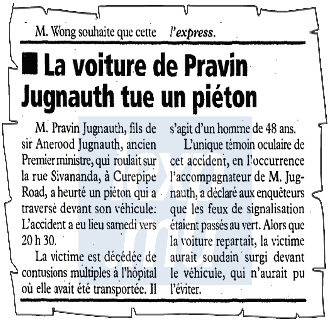 L’accident impliquant Pravind Jugnauth rapporté par l’express en 1996