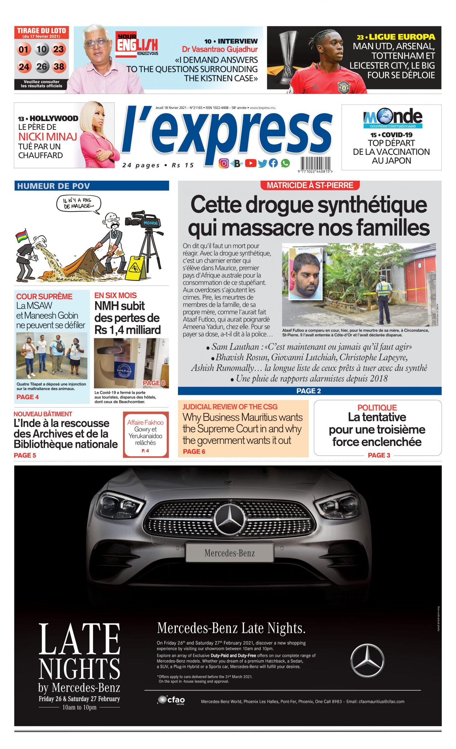 Les grands titres de l'express de ce jeudi 18 février 2021