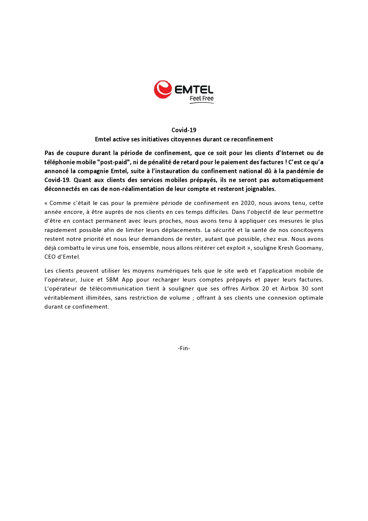 Communiqué de presse