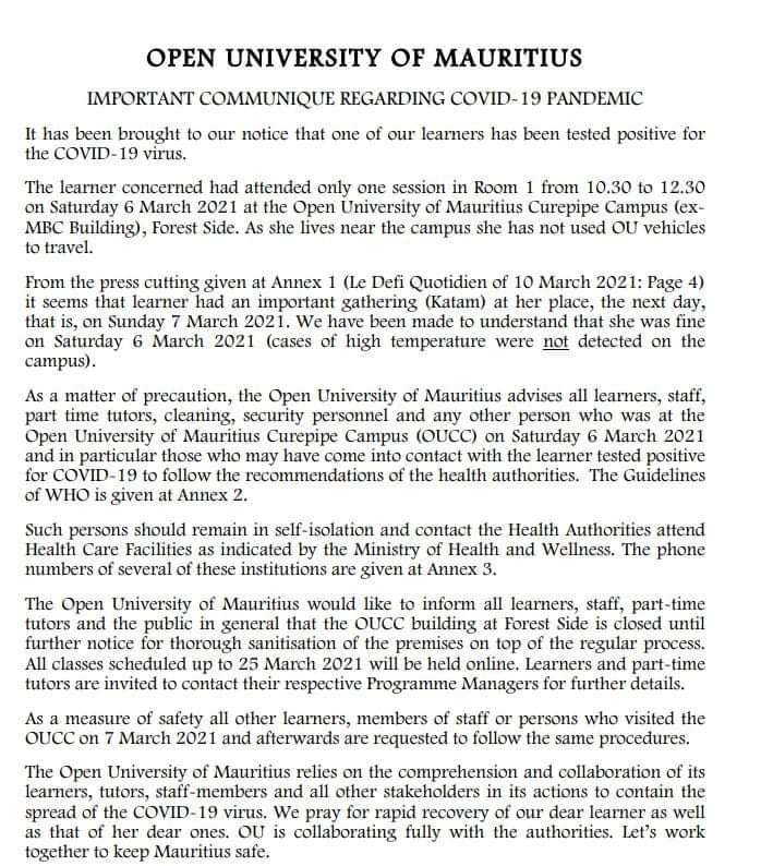 Police Communique - Covid 19 by L'express Maurice