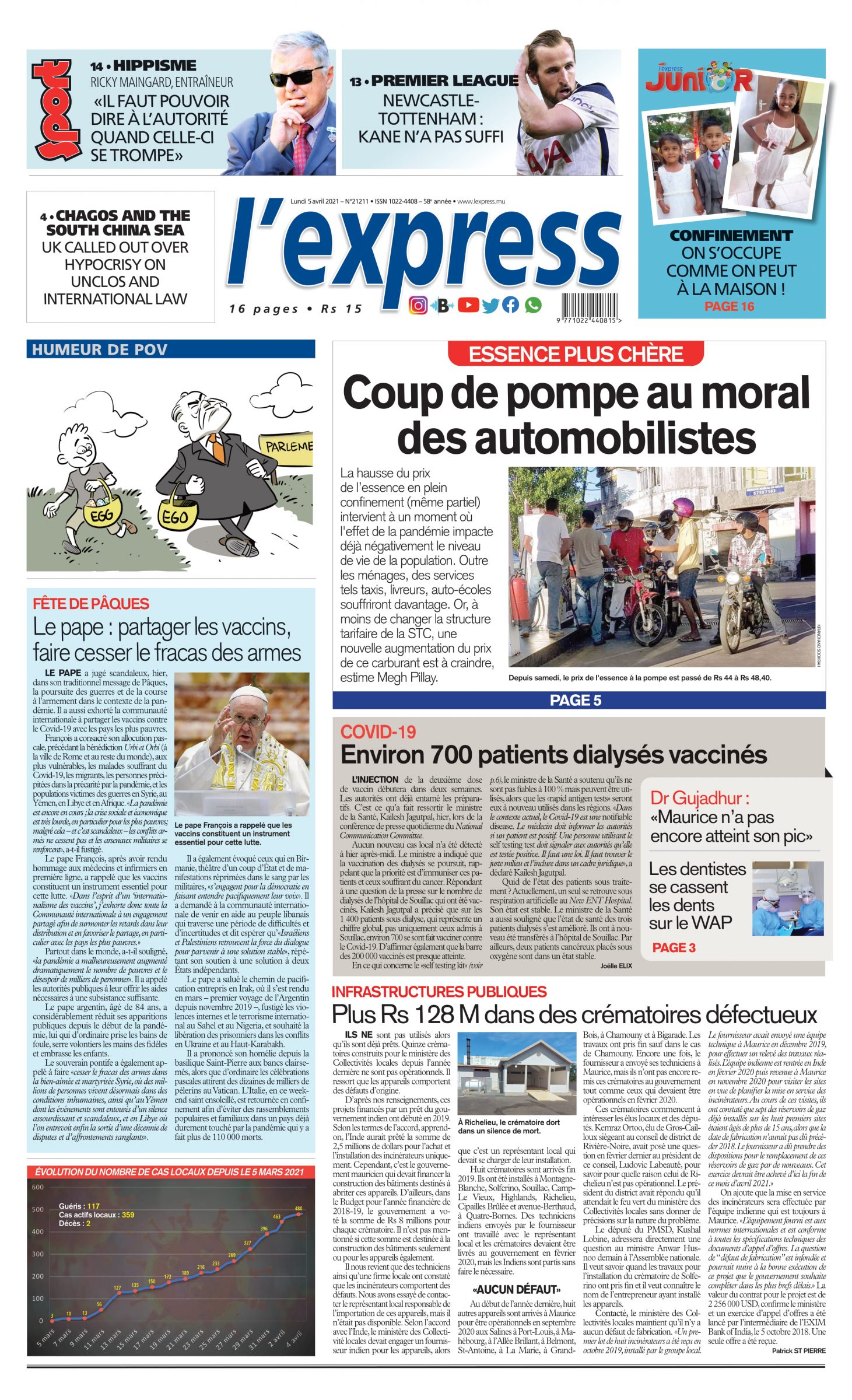 Les grands titres de l'express de ce lundi 5 avril 2021