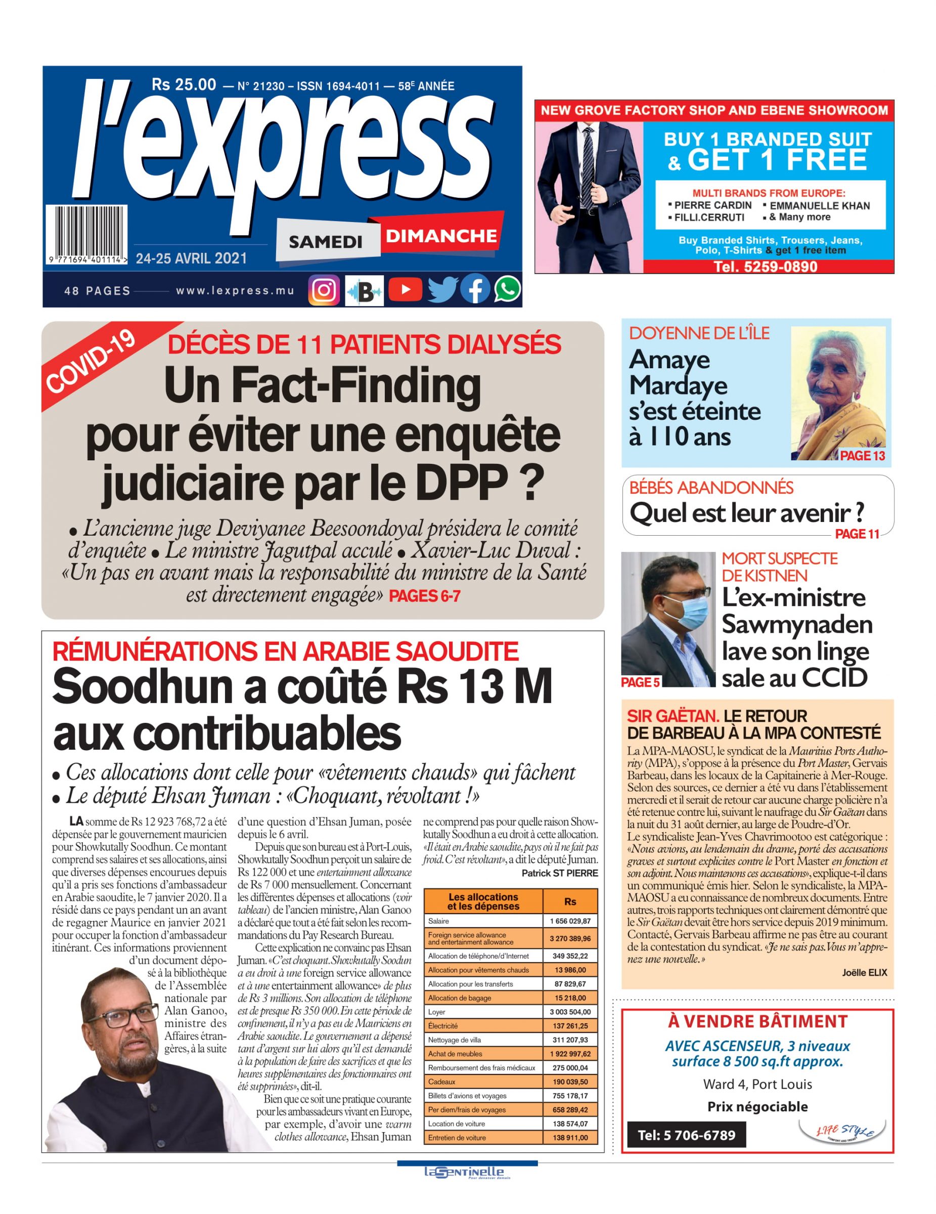 L'express samedi-dimanche: en Une ce samedi 24 avril 2021
