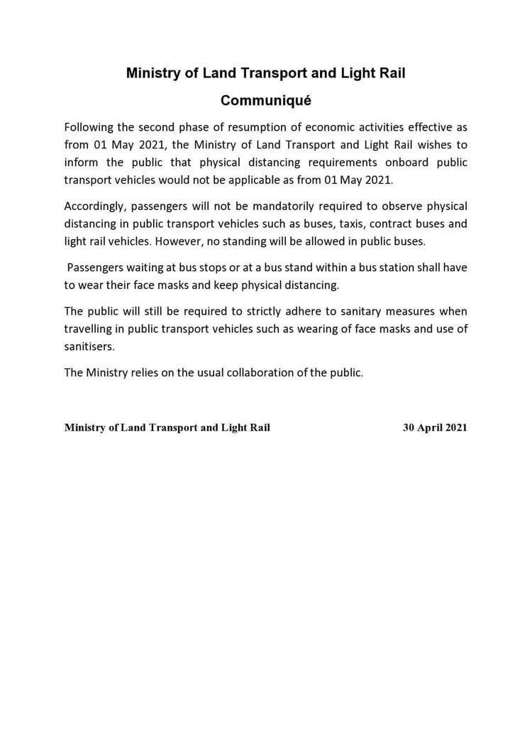 A partir de demain, samedi 1er mai, le pays entame la deuxième phase de déconfinement, et les règles changeront. Selon un communiqué du ministère du Transport routier et du métro émis ce vendredi 30 avril, la distanciation physique ne sera pas applicable dans les transports publics. Cependant, le port du masque reste obligatoire.