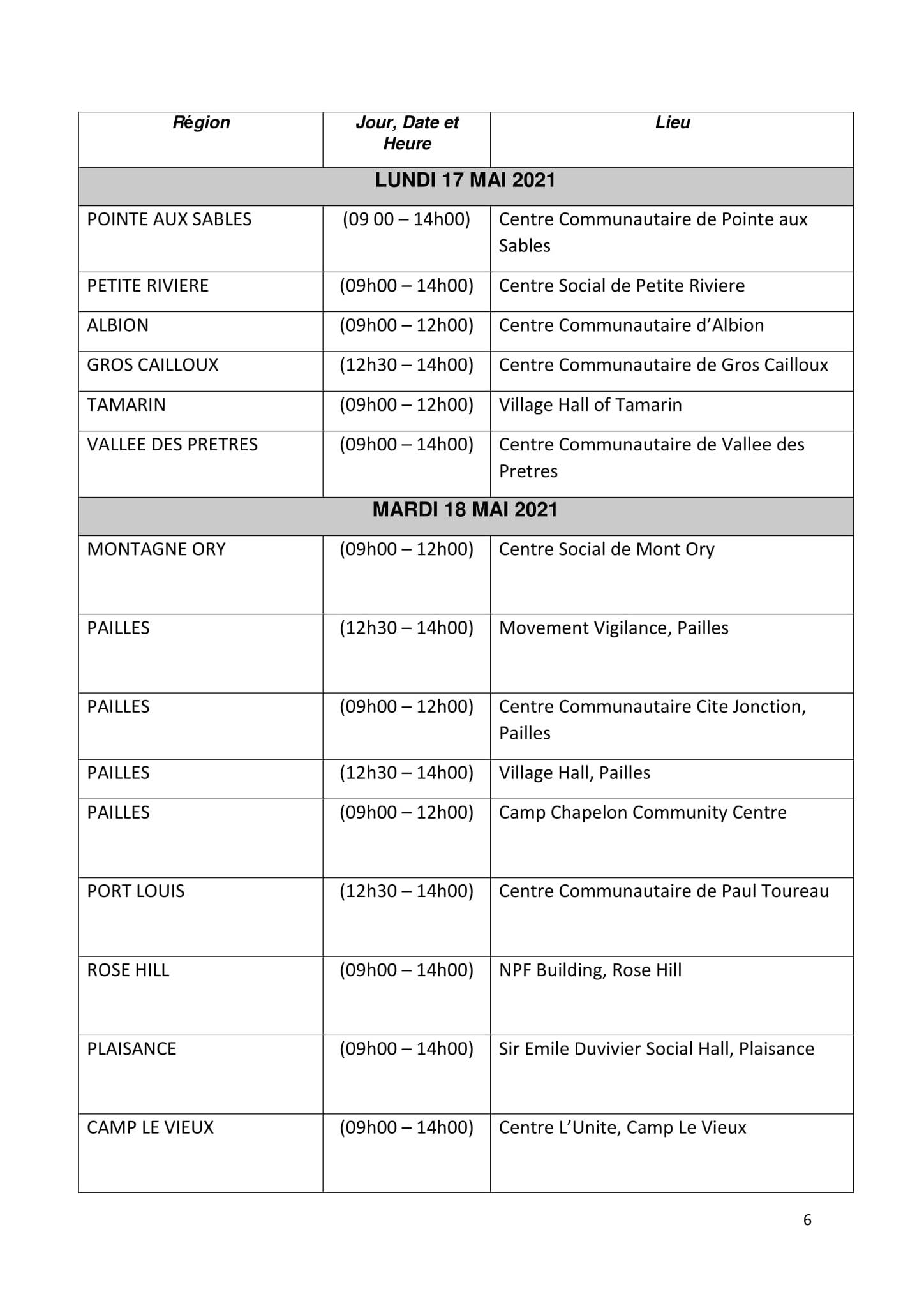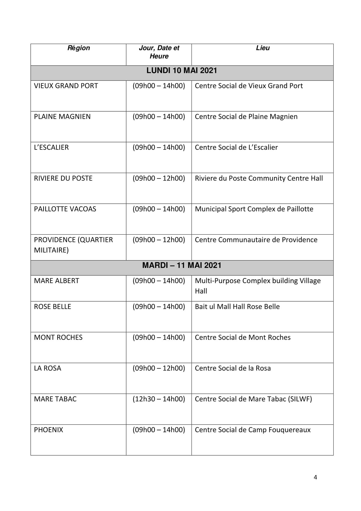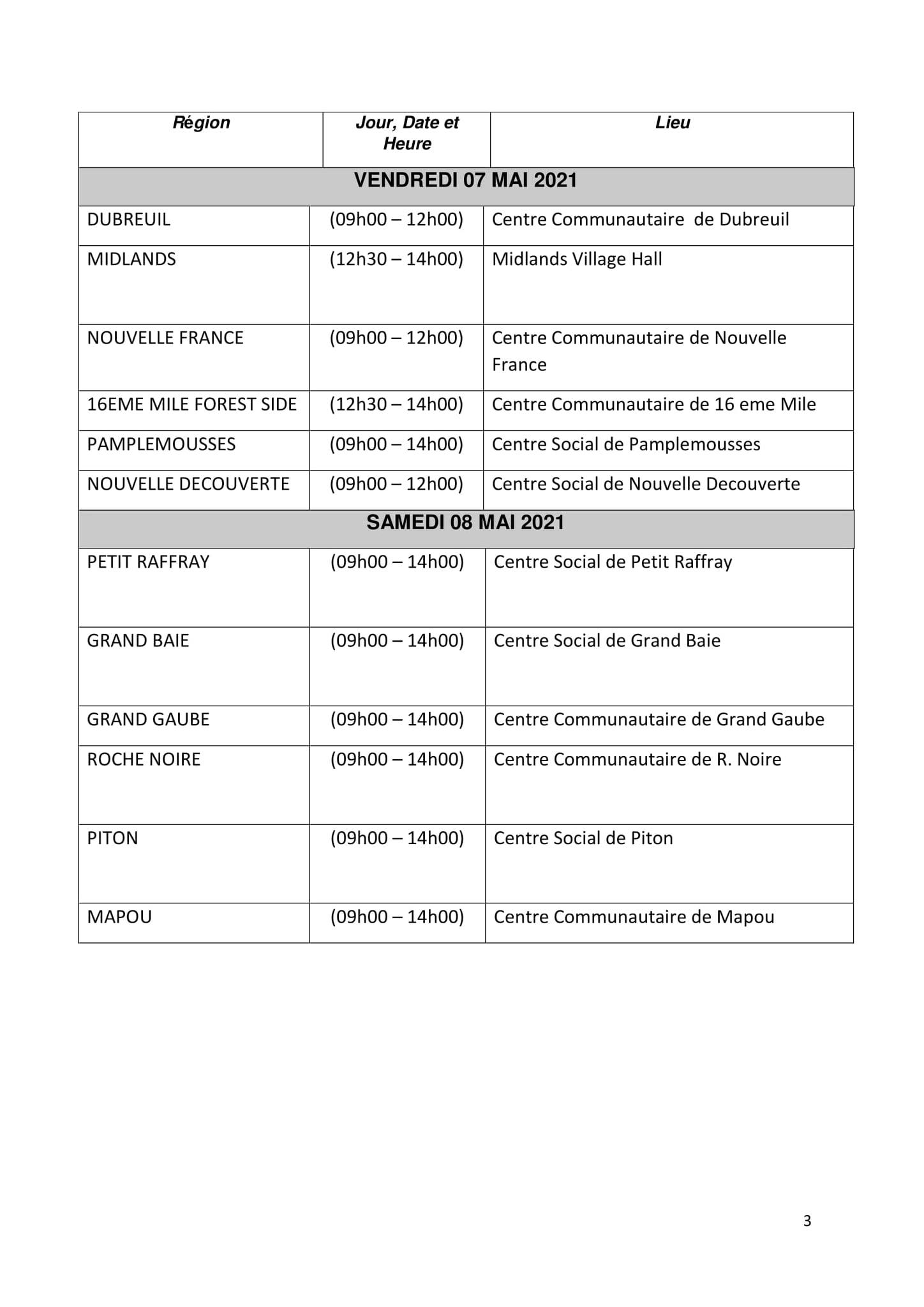 Ci-dessous le calendrier :