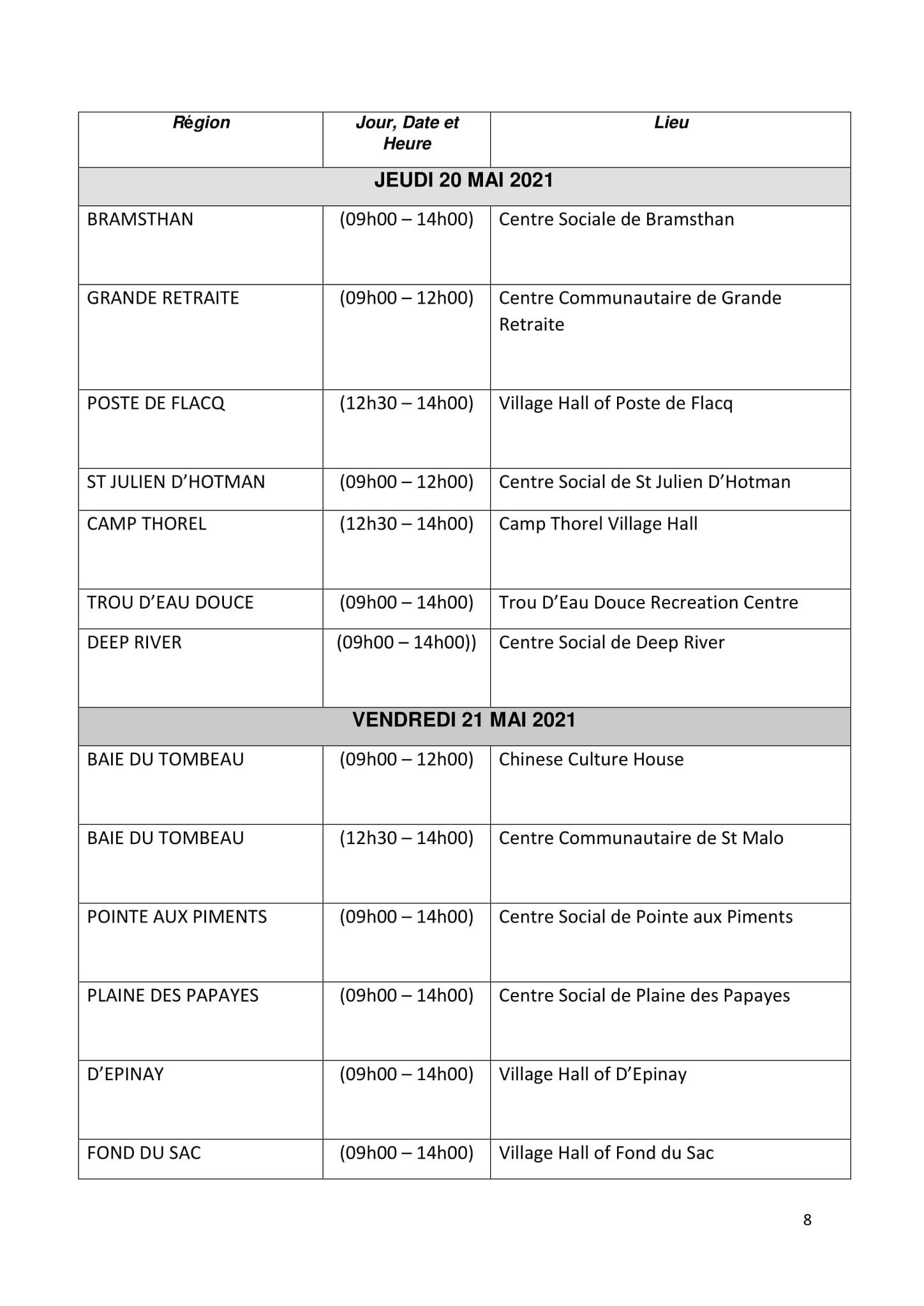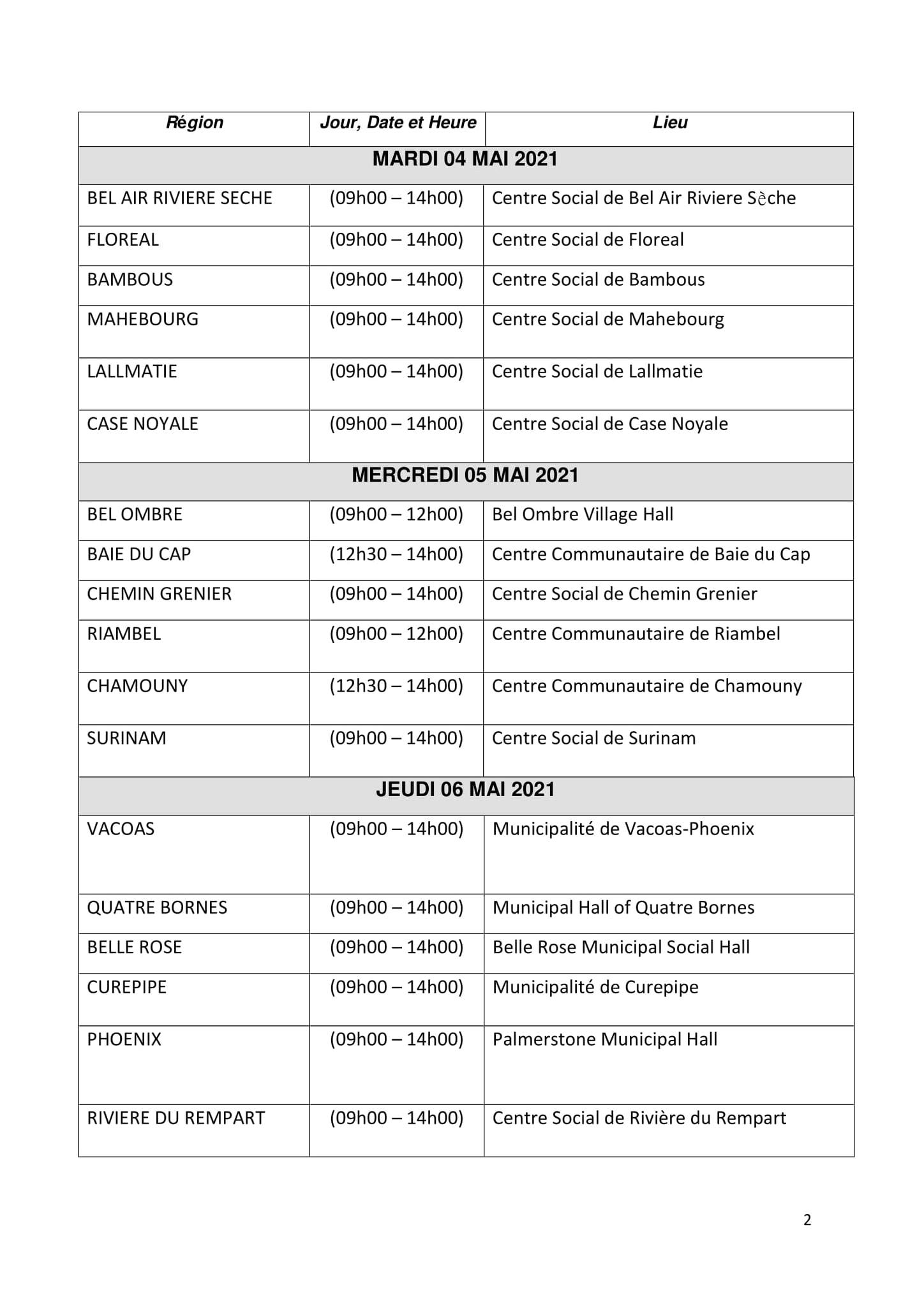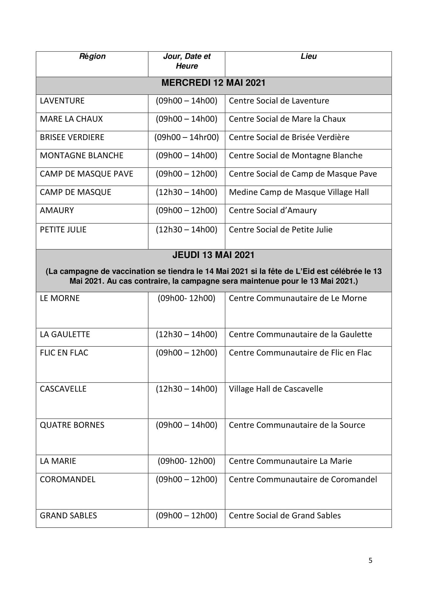Ci-dessous le calendrier :