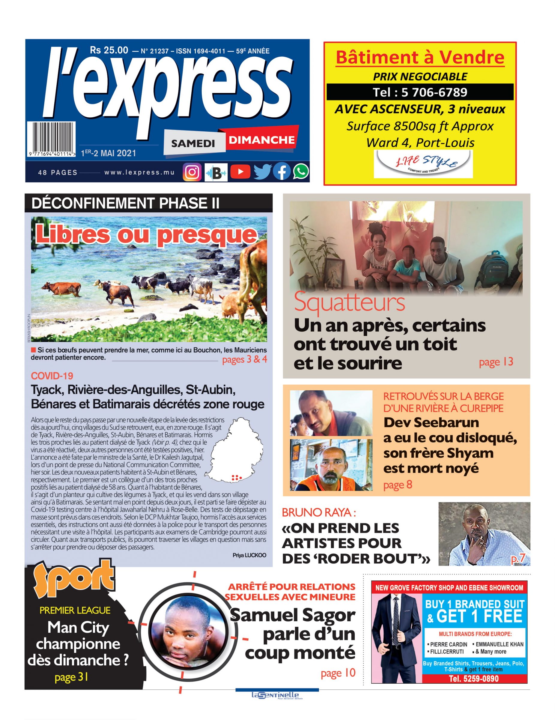 L'express samedi-dimanche: en Une ce samedi 1er mai 2021
