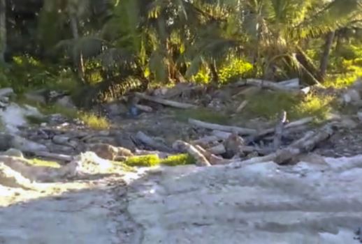 Pis, il assiste, le cœur lourd, à l’abattage des cocotiers au cœur de son île.
