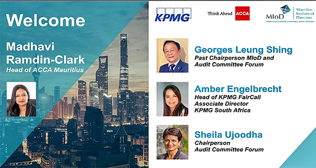 La promotion des activités des lanceurs d’alerte, dont le rôle est indispensable dans la mise au jour de comportements illicites et frauduleux au travail, a franchi une nouvelle étape dans la culture des entreprises à Maurice. Cela a été rendu possible grâce à un webinaire (photo) tenu le 29 avril sur le thème Audit committee guidelines for evaluating a whistleblowing system, qui analyse la responsabilité de comités d’audit pour renforcer la capacité d’évaluation des atouts d’un système de lancement d’alerte. Cette activité organisée grâce à une collaboration entre l’ACCA, association d’experts-comptables, l’Audit Committee Forum (ACF), une initiative émanant d’une collaboration entre la firme d’audit KPMG et le Mauritius Institute of Directors (MIoD), les deux ayant joué un rôle considérable dans la promotion d’un environnement favorable à l’émergence de lanceurs d’alerte dans le pays.