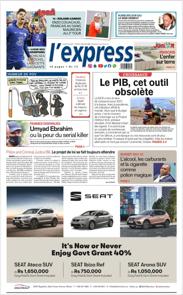Les grands titres de l'express de ce lundi 31 mai 2021