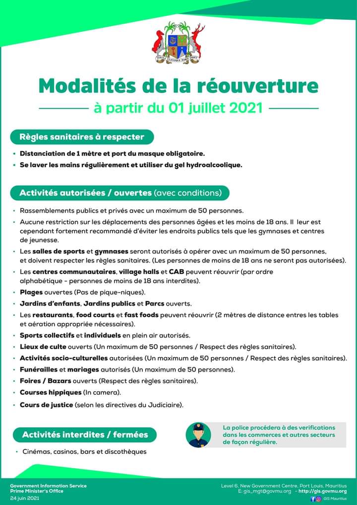 Retrouvez ci-dessous le communiqué sur les modalités de la réouverture à partir de ce 1er juillet :