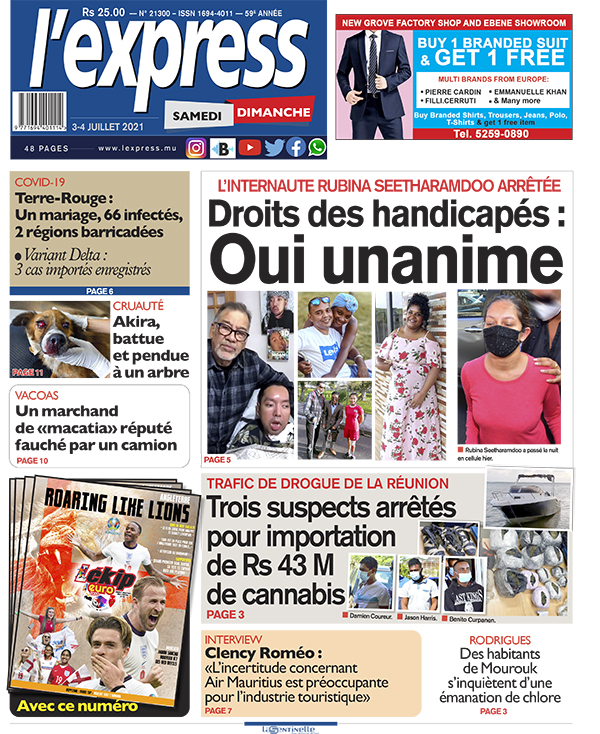 Votre journal deux en un de 48 pages en vente tout le week-end est en kiosque. Au coeur de l'actualité: Droits des handicapés: oui unanime ; Autre titre: Cluster de Terre-Rouge: 66 cas enregistrés en trois jours.
