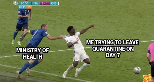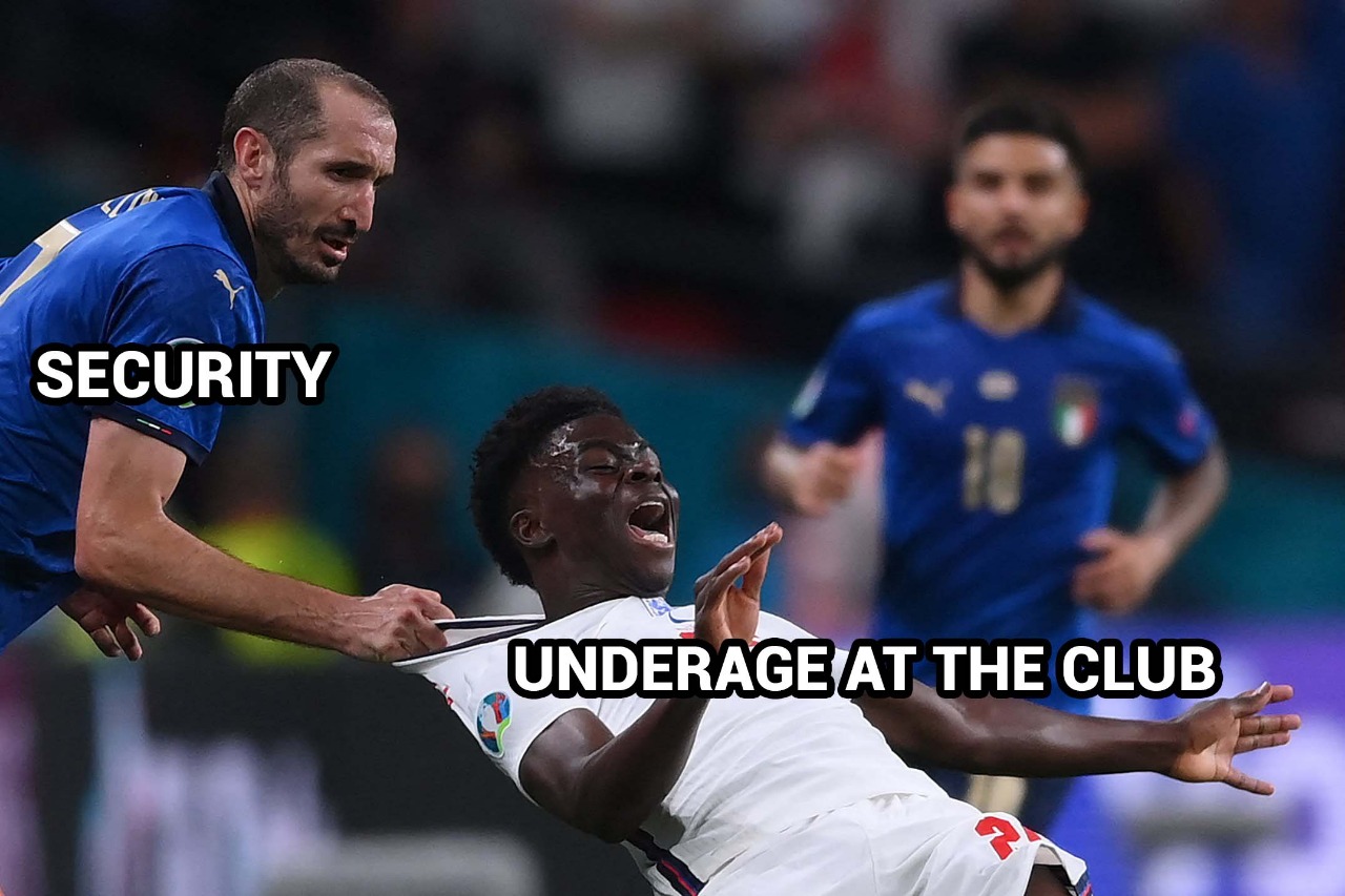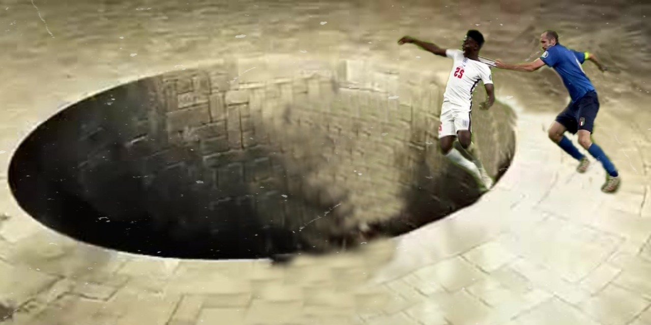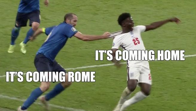 Une action particulière du match est aussi devenue virale : à quelques minutes de la fin du temps règlementaire, Giorgio Chiellini, le capitaine italien, a littéralement tiré l’ailier anglais Bukayo Saka par le maillot l'empêchant d'aller au but alors qu'il n'y avait plus aucun défenseur italien en face du joueur d'Arsenal. Une faute tactique, un geste violent qui a inspiré des internautes mais également l’équipe graphique de lexpress.mu.