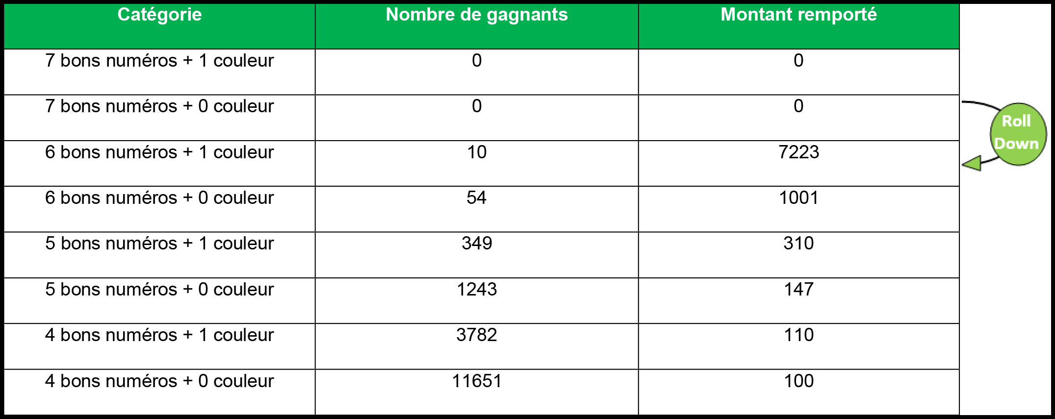 La combinaison gagnante de ce tirage du 16 juillet 2021 est : 03-06-09-13-18-20-27 et la couleur Jaune.