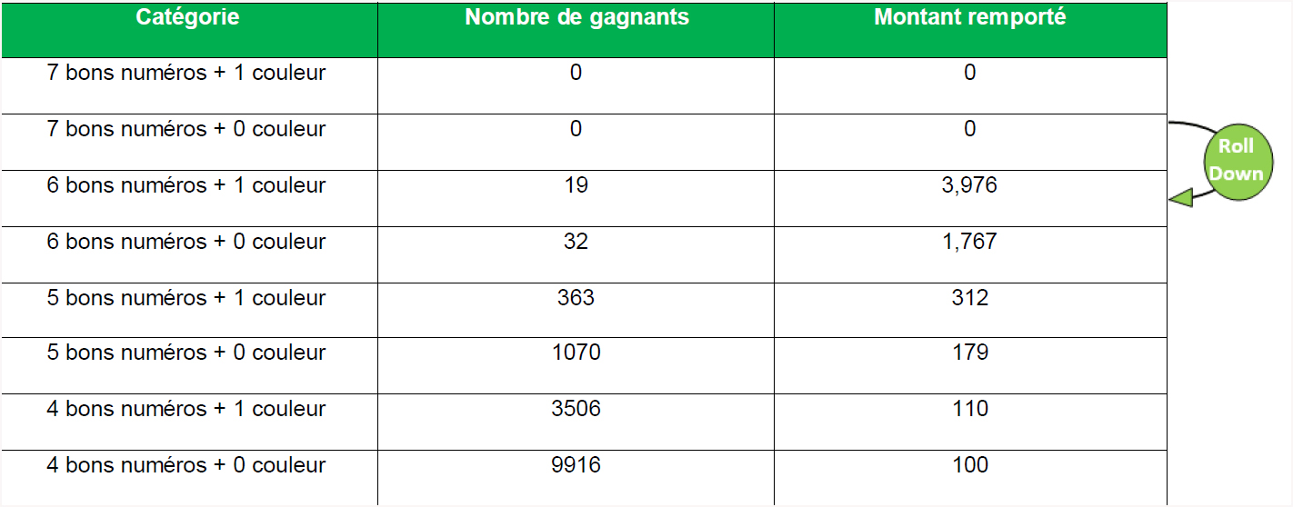 La combinaison gagnante de ce tirage du 23 juillet 2021 est : 03-09-13-19-20-26-27 et la couleur rouge