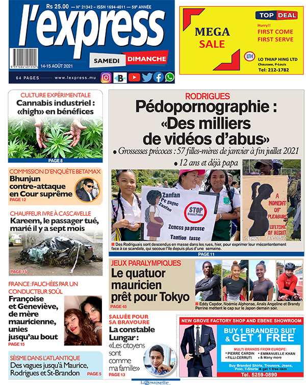 Votre journal deux en un de 64 pages en vente tout le week-end est en kiosque. Au coeur de l'actualité: Pédopornographie: «Des milliers de vidéos d’abus» ; Autre titre: Affaire Betamax: Veekram Bhunjun conteste la commission d’enquête.