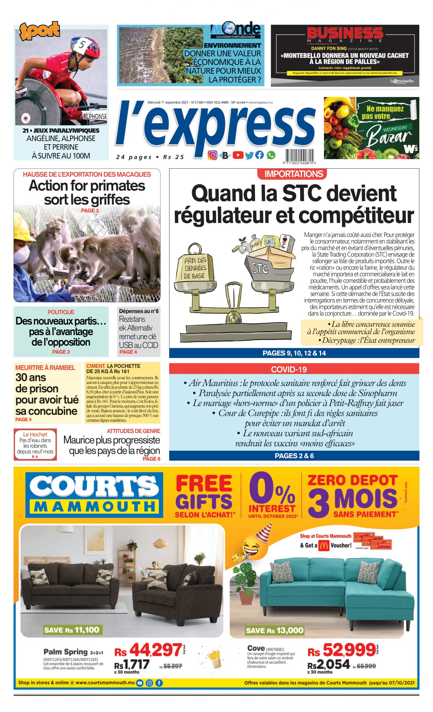 Les grands titres de l'express de ce mercredi 1er septembre 2021