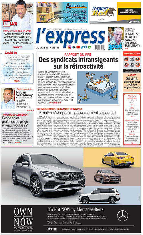 En une de l'express: Rapport du PRB : Des syndicats intransigeants sur la rétroactivité ; Autre titre: Projet du gouvernement : Pêche en eau profonde ou piège en eaux troubles ?